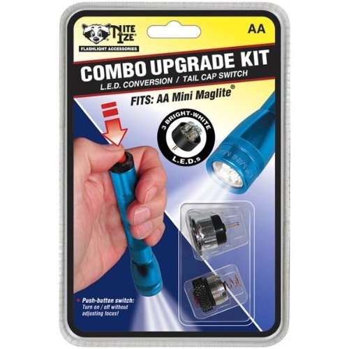 LED Conversion and Tail Cap On/Off Switch Combo Upgrade Kit, For All Mini-Mag AA Cell Flashlights, LEDs Extend Battery Life By Up To 4 Times, Features 3 Bright White LEDs and 10 Year Lamp Life, Push Button Tail Cap On/Off Switch For On Demand Illumination,.